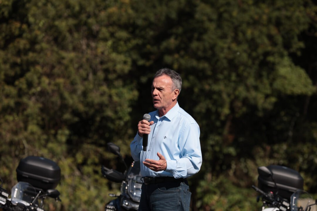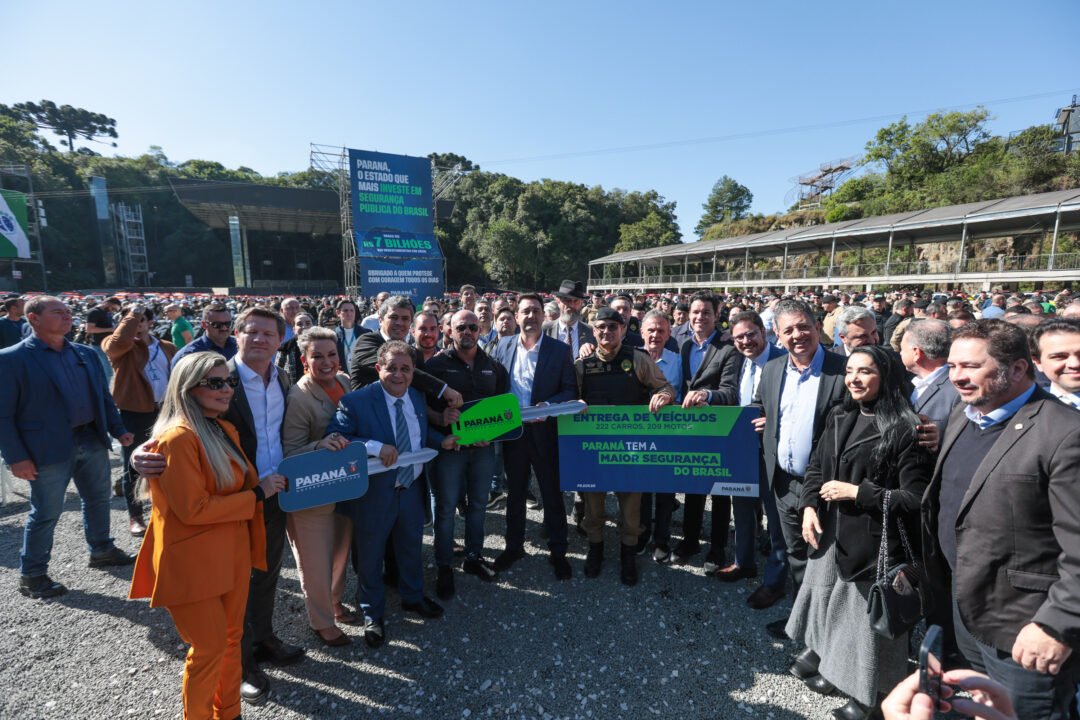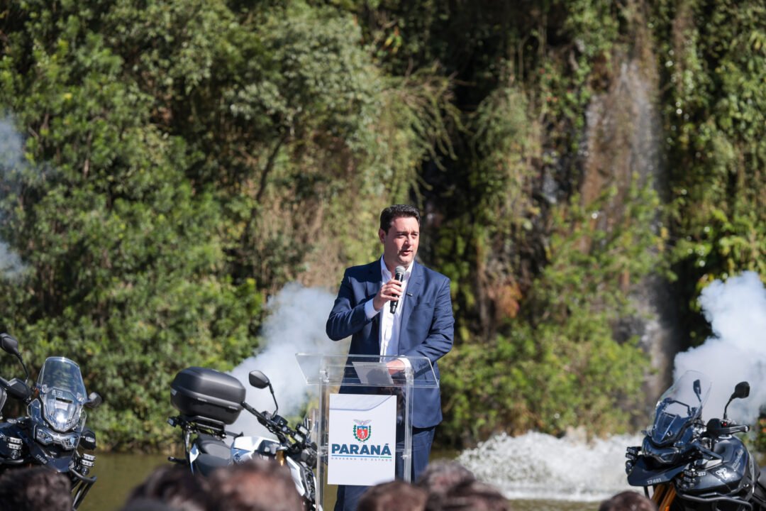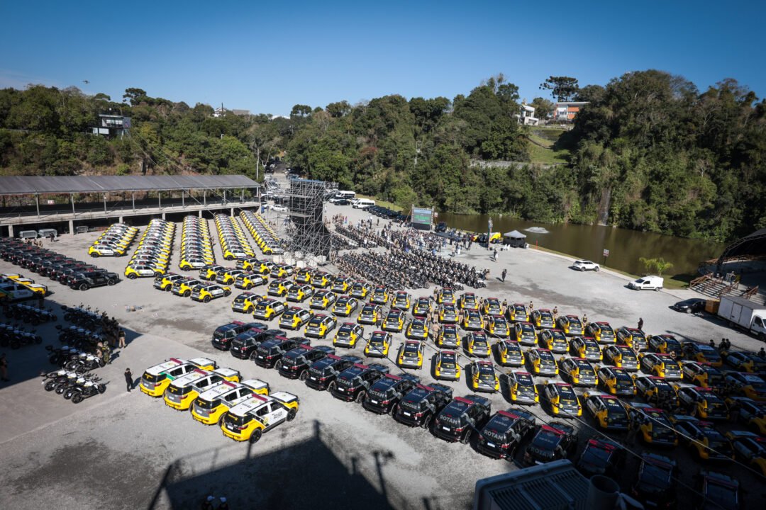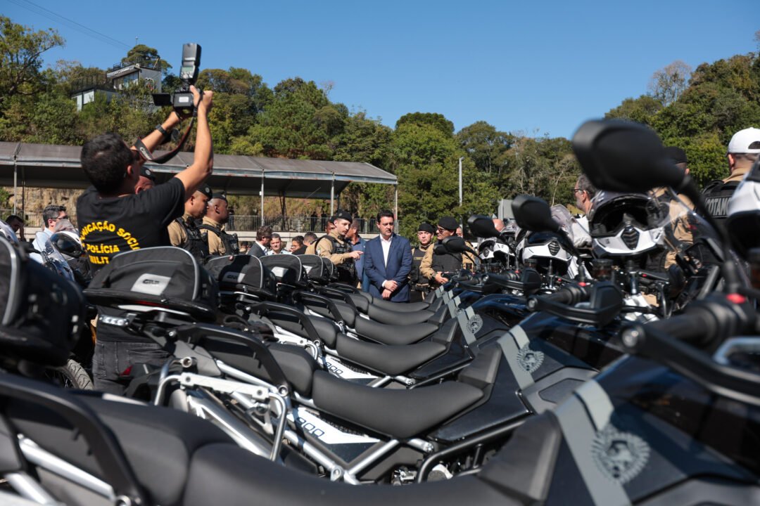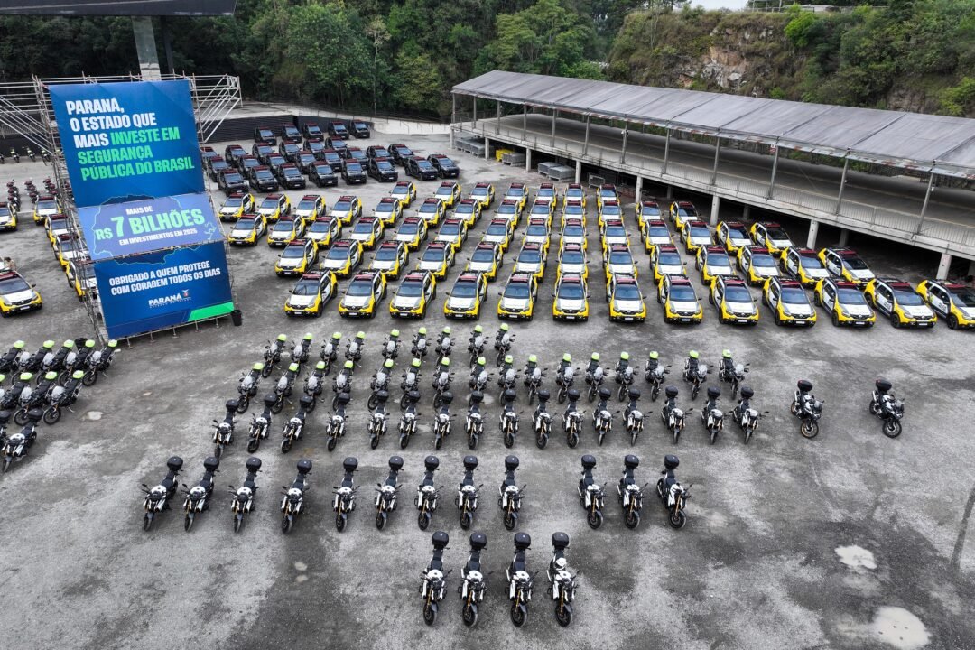 O governador Carlos Massa Ratinho Junior entregou nesta terça-feira (17) 209 motocicletas e 222 automóveis novos para as forças tática e operacional da Polícia Militar do Paraná (PMPR). Foram investidos R$ 63,2 milhões para a renovação da frota de viaturas, que serão distribuídos para diversas unidades da PMPR, incluindo o Batalhão de Operações Especiais (BOPE) e a Patrulha Maria da Penha.