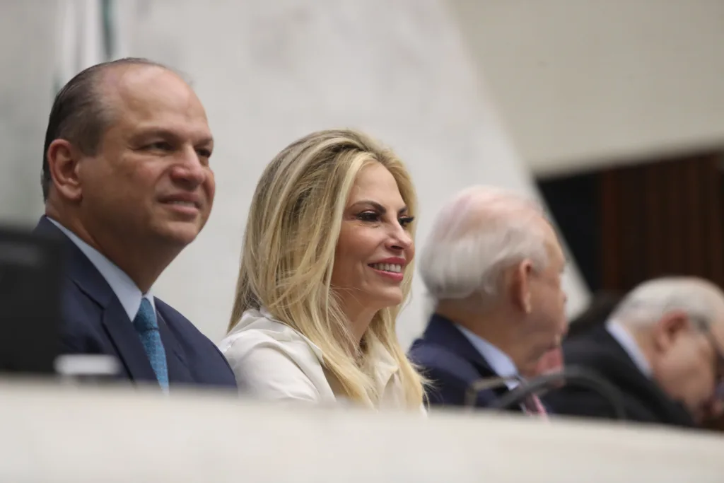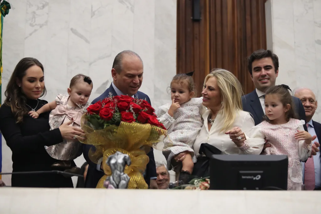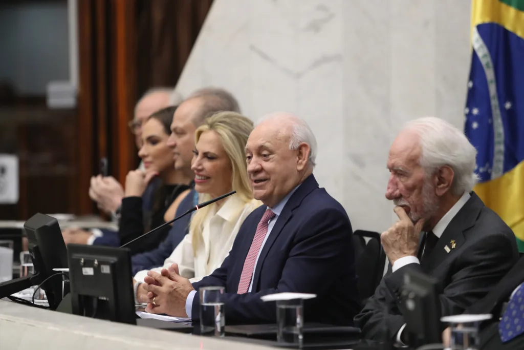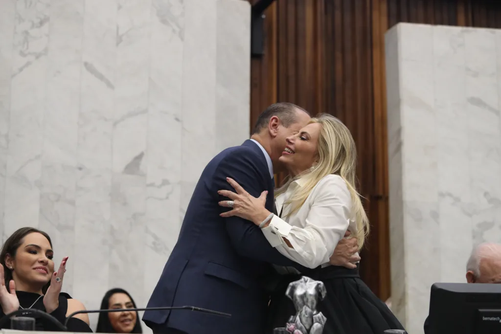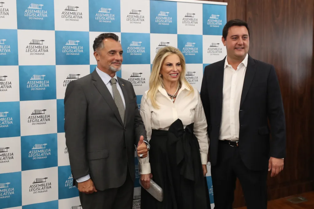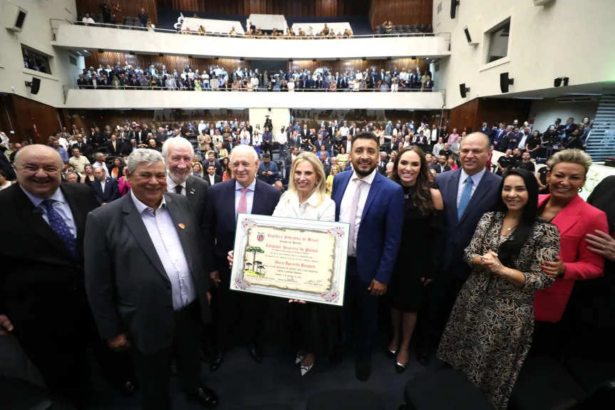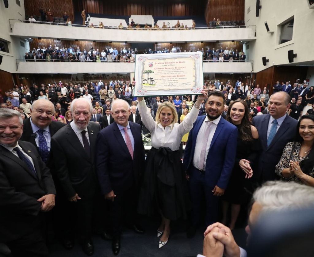 O governador Carlos Massa Ratinho Junior participou na noite desta terça-feira (27), na Assembleia Legislativa do Paraná (Alep), da solenidade de entrega do Título de Cidadã Honorária do Estado do Paraná para a ex-governadora Cida Borghetti. A sessão reuniu amigos, familiares, empresários e outras lideranças políticas, além de ex-colegas da homenageada dos tempos de Alep, Câmara Federal, Governo do Estado e Itaipu Binacional.