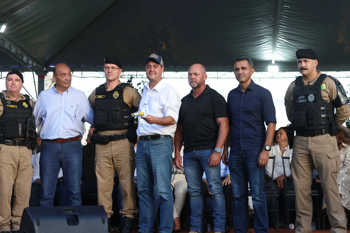 PATRULHA RURAL – O governador também foi homenageado pela Sociedade Rural de Londrina pelo Programa Patrulha Rural Comunitária 4.0, da Polícia Militar do Paraná (PMPR). Ele promove operações policiais, visitas comunitárias, cadastros de propriedades, vistorias preventivas, promoção de integração comunitária e orientações diárias, prisões e apreensões. O programa também auxilia na composição e incentivo à criação dos Conselhos Comunitários de Segurança Rural e ações de engajamento comunitário junto aos sindicatos e sociedades rurais.