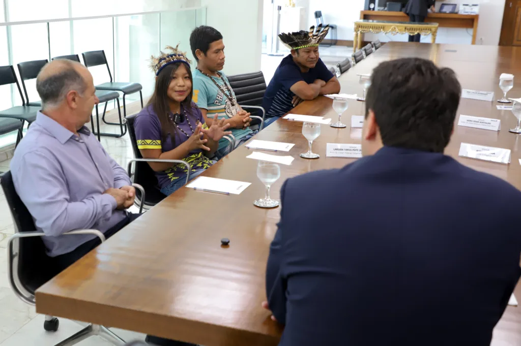 Leitura: Governador recebe 1ª aluna indígena selecionada para o programa Ganhando o Mundo