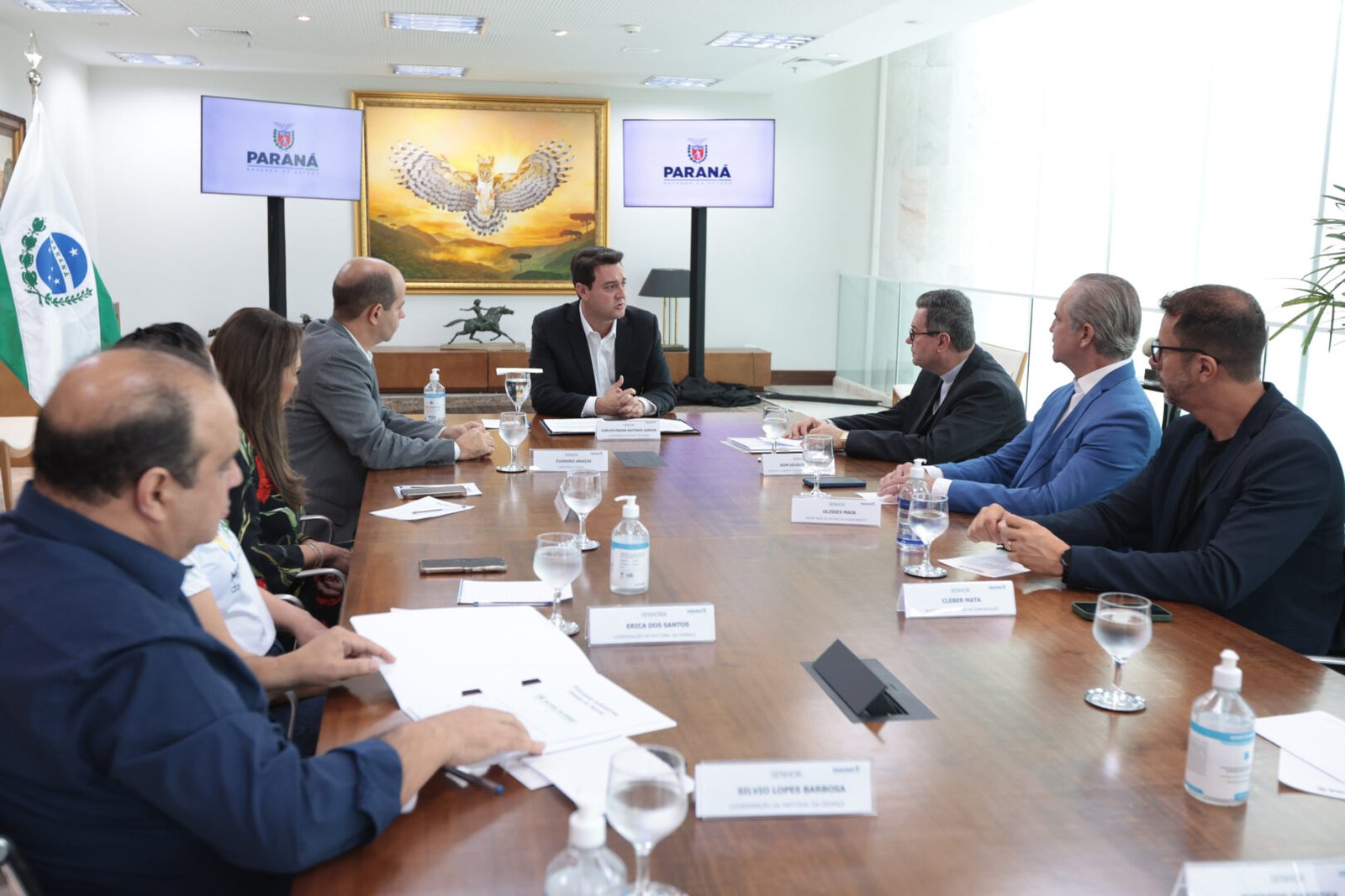 PRESENÇAS – Também participaram do encontro o secretário estadual da Comunicação, Cleber Mata; os deputados estaduais Evandro Araújo e Maria Victoria; a coordenadora da Pastoral da Criança, Erica Santos; e o assessor de Comunicação da Cúria Metropolitana de Maringá, Everton Barbosa.