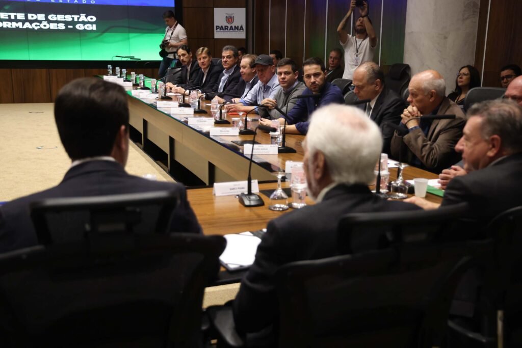 PRESENÇAS – Participaram da reunião o vice-governador Darci Piana; o chefe da Casa Civil, João Carlos Ortega; os secretários da Agricultura e do Abastecimento, Natalino Avance de Souza, da Segurança Pública, Hudson Teixeira, da Indústria, Comércio e Serviços, Ricardo Barros, e da Mulher, Igualdade Racial e Pessoa Idosa, Leandre Dal Ponte; os diretores-gerais da Secretaria de Educação, João Luiz Giona, e da Secretaria de Inovação, Modernização e Transformação Digital, Marcos Stamm; o chefe da Casa Militar, tenente-coronel Marcos Tordoro; e os deputados federais Beto Richa, Diego Garcia, Dilceu Sperafico, Elton Welter, Geraldo Mendes, Luciano Ducci, Luísa Canziani, Matheus Laiola, Padovani, Paulo Litro e Tião Medeiros.
