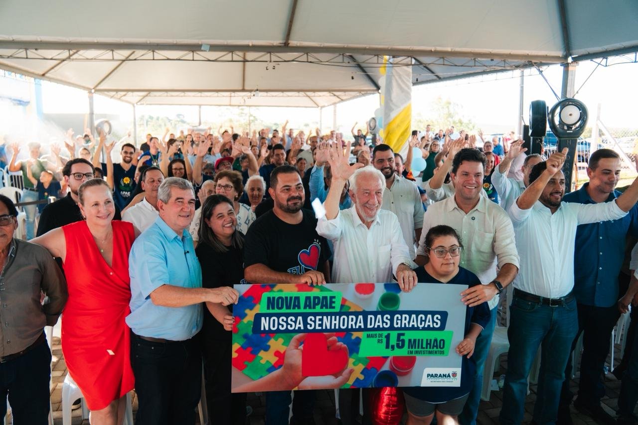 Encerrando as atividades em Nossa Senhora das Graças, Guto Silva celebrou a entrega da nova sede da Apae, realizada ao lado do vice-governador Darci Piana. Com investimento de R$ 1,5 milhão viabilizado pela Secretaria das Cidades, a nova estrutura põe fim a 21 anos de espera da instituição por um prédio próprio.