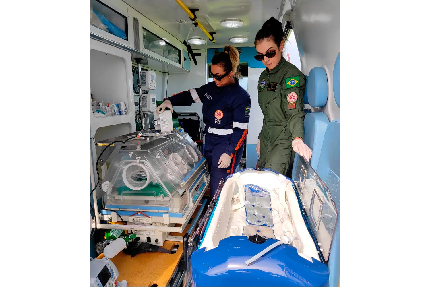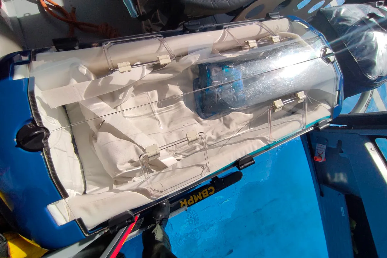 Helicóptero transporta recém-nascida pela primeira vez em incubadora neonatal