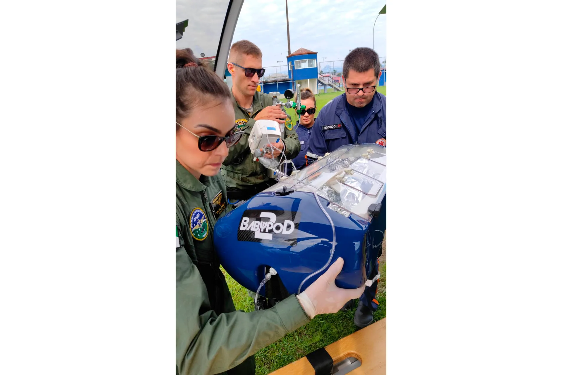 INCUBADORA – Diferente de incubadoras convencionais, que podem pesar cerca de 110 kg, a BabyPod é fabricada em fibra de carbono, pesa aproximadamente 8 kg e possui certificação europeia. O equipamento foi projetado para proteger o recém-nascido contra vibrações, impactos e variações de temperatura durante o voo, proporcionando um ambiente estável e seguro mesmo em situações críticas.