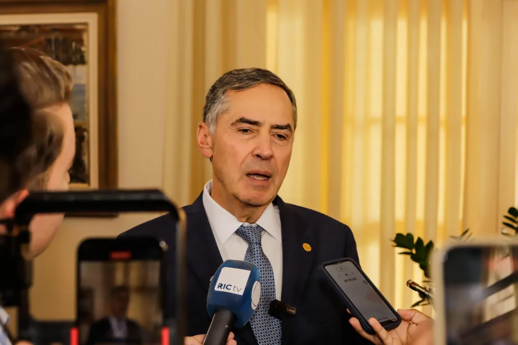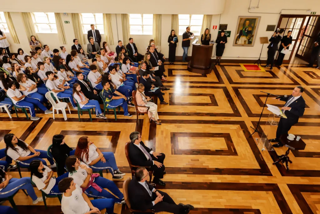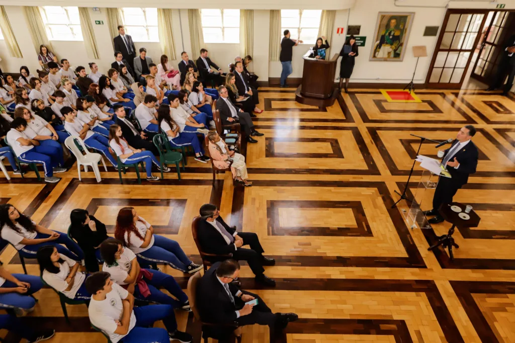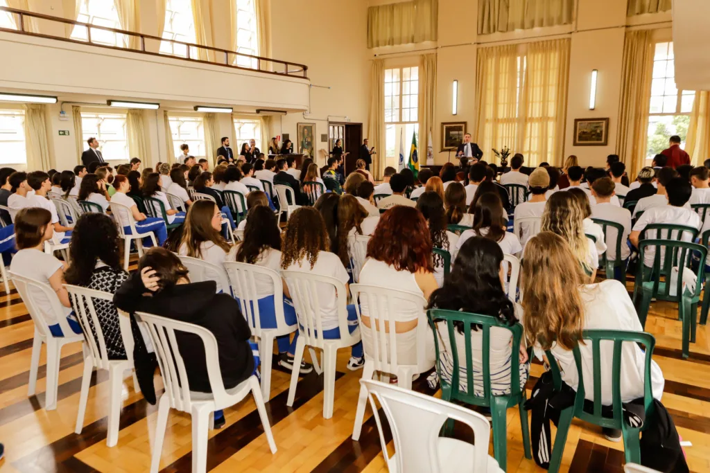 O presidente do Supremo Tribunal Federal (STF), ministro Luís Roberto Barroso, realizou uma palestra motivacional para estudantes do Colégio Estadual do Paraná (CEP), em Curitiba, nesta sexta-feira (01). Cerca de 100 estudantes do terceiro ano do ensino médio acompanharam a fala do ministro, que discorreu sobre sua trajetória, os cenários brasileiro e mundial e também sobre valores.