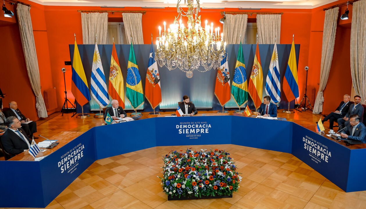O encontro desta segunda-feira contou com a presença de importantes líderes, incluindo os presidentes do Chile, Gabriel Boric, do Uruguai, Yamandú Orsi, da Colômbia, Gustavo Petro, e o primeiro-ministro da Espanha, Pedro Sanchez.