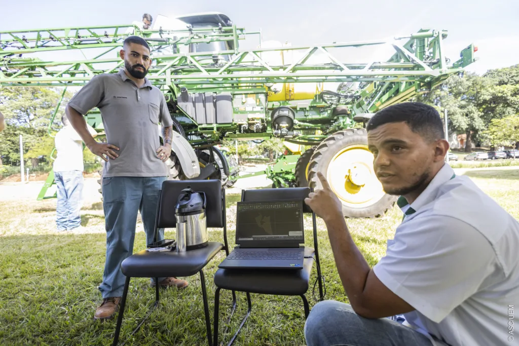 Ainda segundo Sales, a parceria entre UEM e a cooperatiiva, que tem no seu portifólio a prática da Agricultura de Precisão, possibilita trazer as inovações tecnológicas que as máquinas agrícolas estão adquirindo. O deslocamento delas ao câmpus foi viabilizado pelo gerente da Cocamar Máquinas, Carlos Santana.