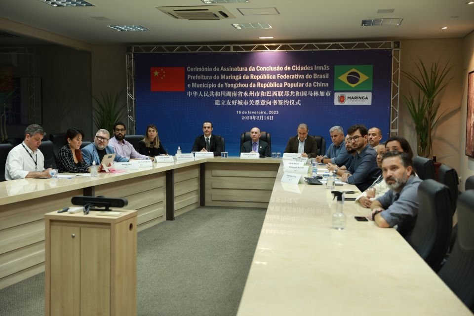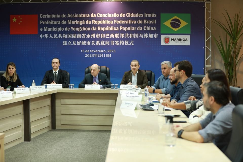 Foi assinado na manhã desta quinta-feira, 16, um acordo de irmandade entre Maringá e a cidade de Yongzhou, da China. A solenidade aconteceu na sede da Associação Comercial e Empresarial de Maringá (Acim), com a assinatura online dos documentos, para selar a parceria, que busca troca de conhecimento econômico, cultural e turístico entre as cidades.