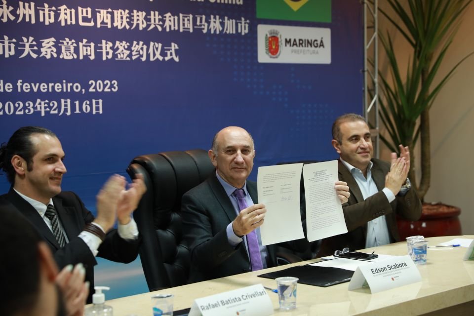 Já o prefeito de Yongzhou, Chen Ailin, citou as principais características da cidade chinesa, disse ser uma honra assinar o acordo com Maringá, fez elogios para a cidade e reforçou que fará uma visita em breve. Yongzhou fica no centro sul chinês, tem 6,3 milhões de habitantes e área de 22.259 km².