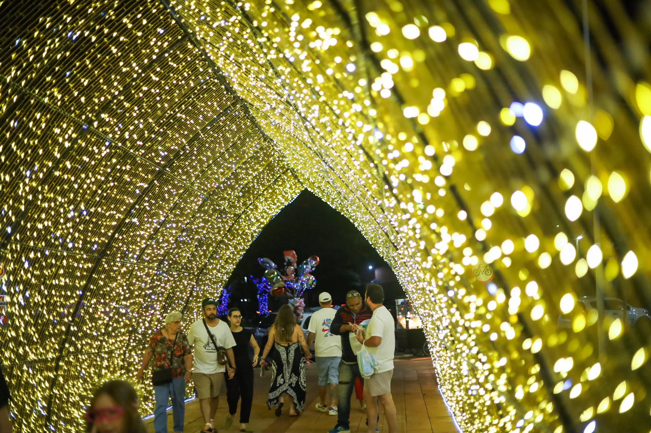 Túnel de luzes na Praça da Catedral.