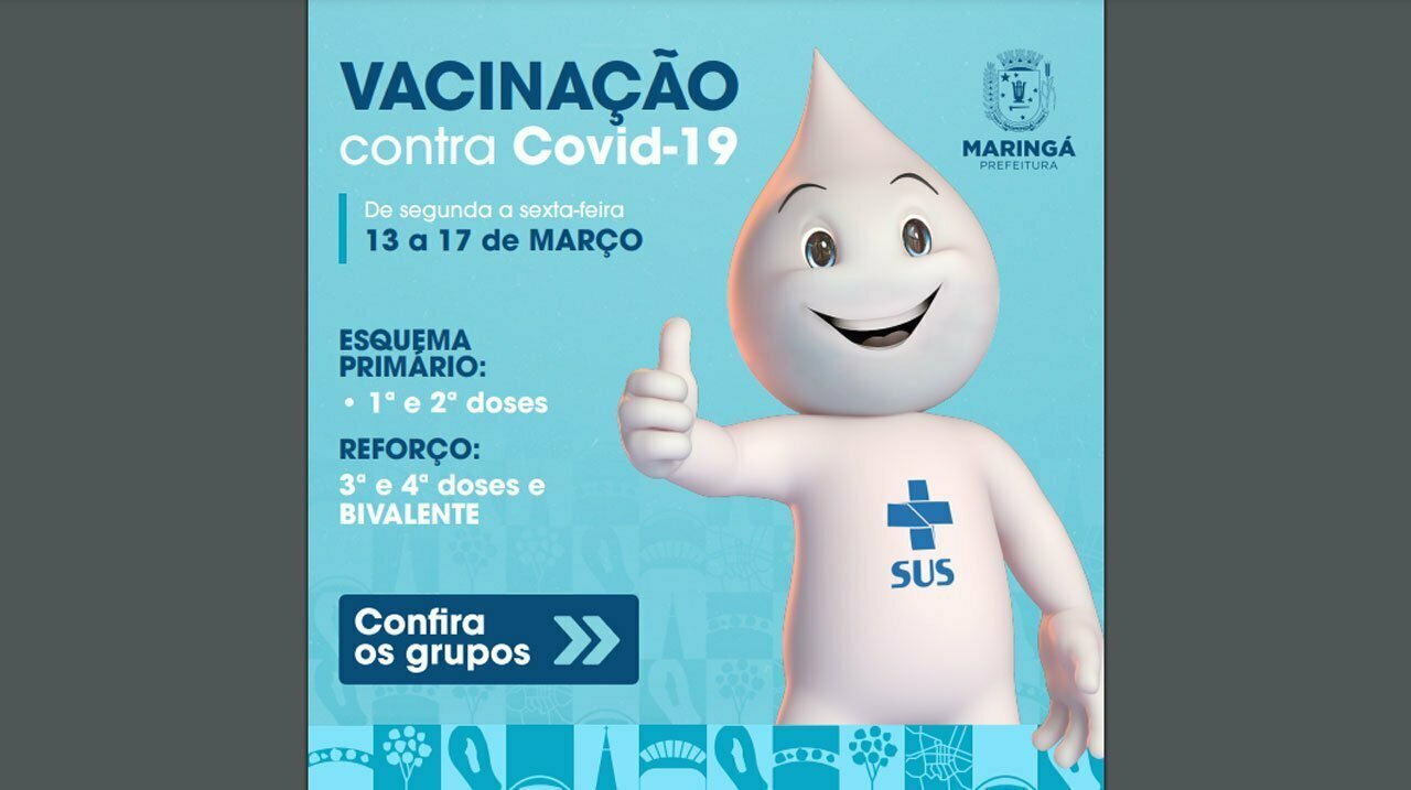 A Prefeitura de Maringá segue com a vacinação contra a Covid-19 nesta semana, entre segunda-feira, 13, e sexta-feira, 17. Veja o cronograma.