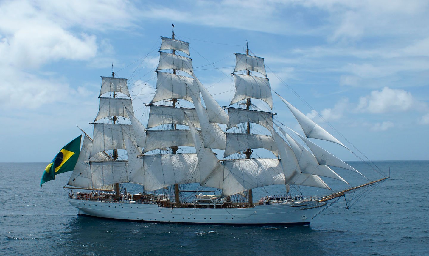 O navio foi construído para celebrar o descobrimento do Brasil e também é empregado no treinamento dos militares.