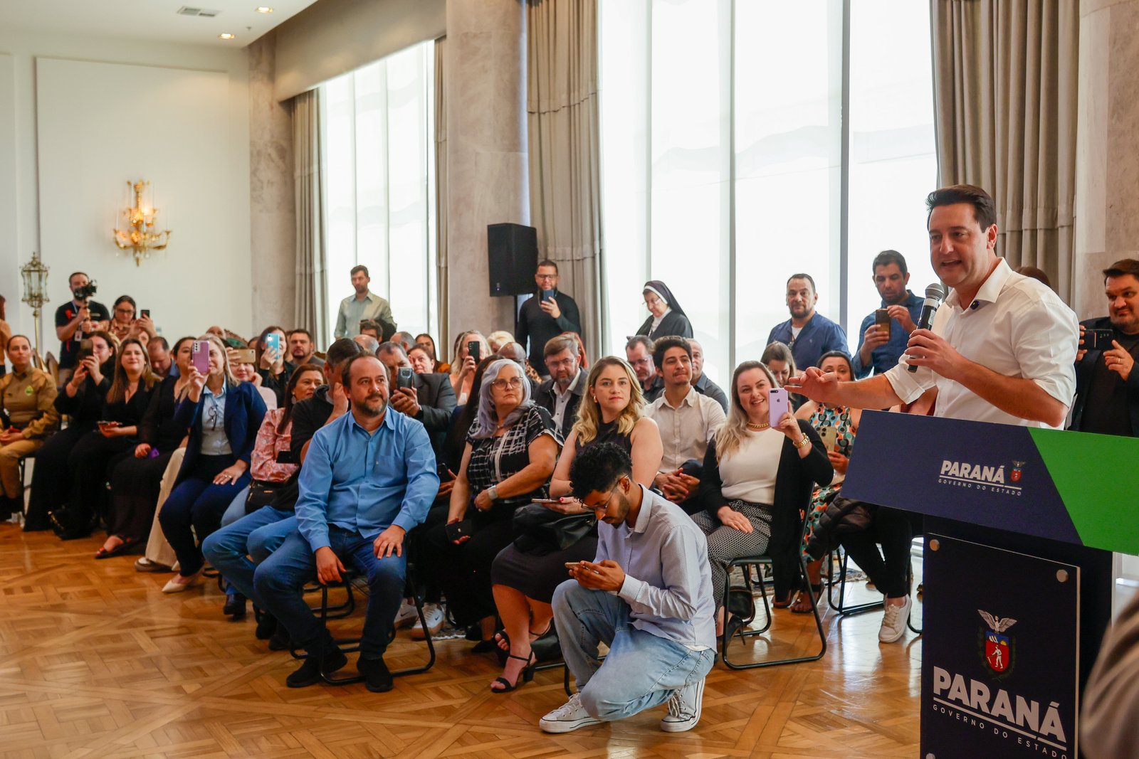 O governador Carlos Massa Ratinho Junior anunciou, nesta quarta-feira (16), os destinos de intercâmbio dos alunos da rede estadual de ensino do Paraná que vão participar do Ganhando o Mundo em 2025. Esta será a maior edição da história do programa, com 1,2 mil intercambistas viajando para cinco países.