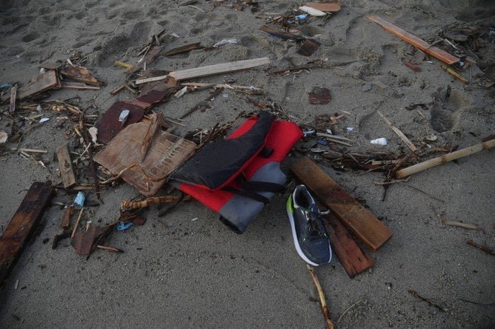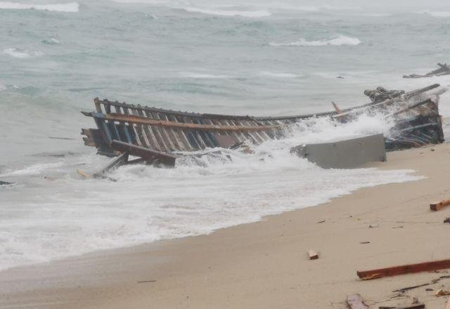 As imagens da polícia italiana mostramdestroços de madeira espalhados ao longo de uma centena de metros da praia, onde muitos socorristas e sobreviventes estavam à espera de serem transferidos para um centro de acolhimento.