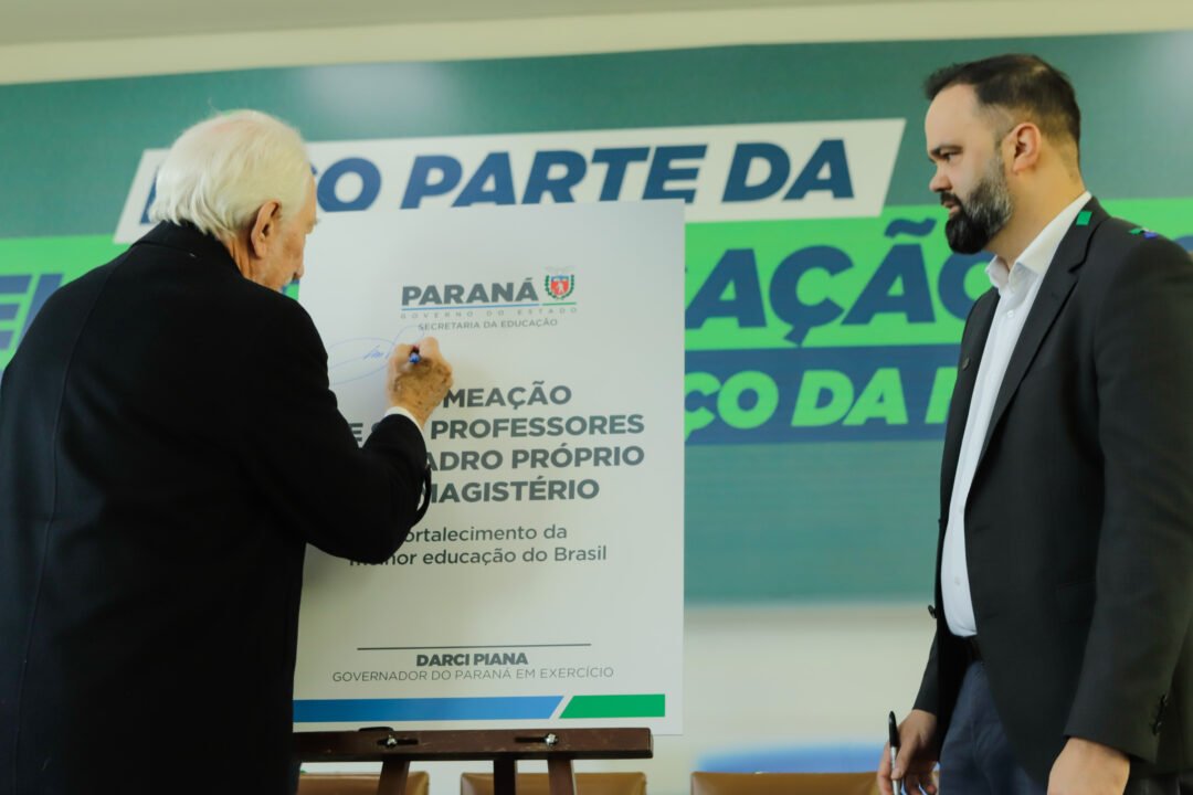 O governador em exercício Darci Piana e o secretário estadual da Educação, Roni Miranda, assinaram nesta segunda-feira (7) a nomeação de mais 988 professores para atuar na rede estadual de ensino. Eles foram aprovados no concurso público realizado em 2023 e vão atender escolas dos 32 Núcleos Regionais de Educação do Paraná, dando aula em diferentes disciplinas a partir do segundo semestre letivo.