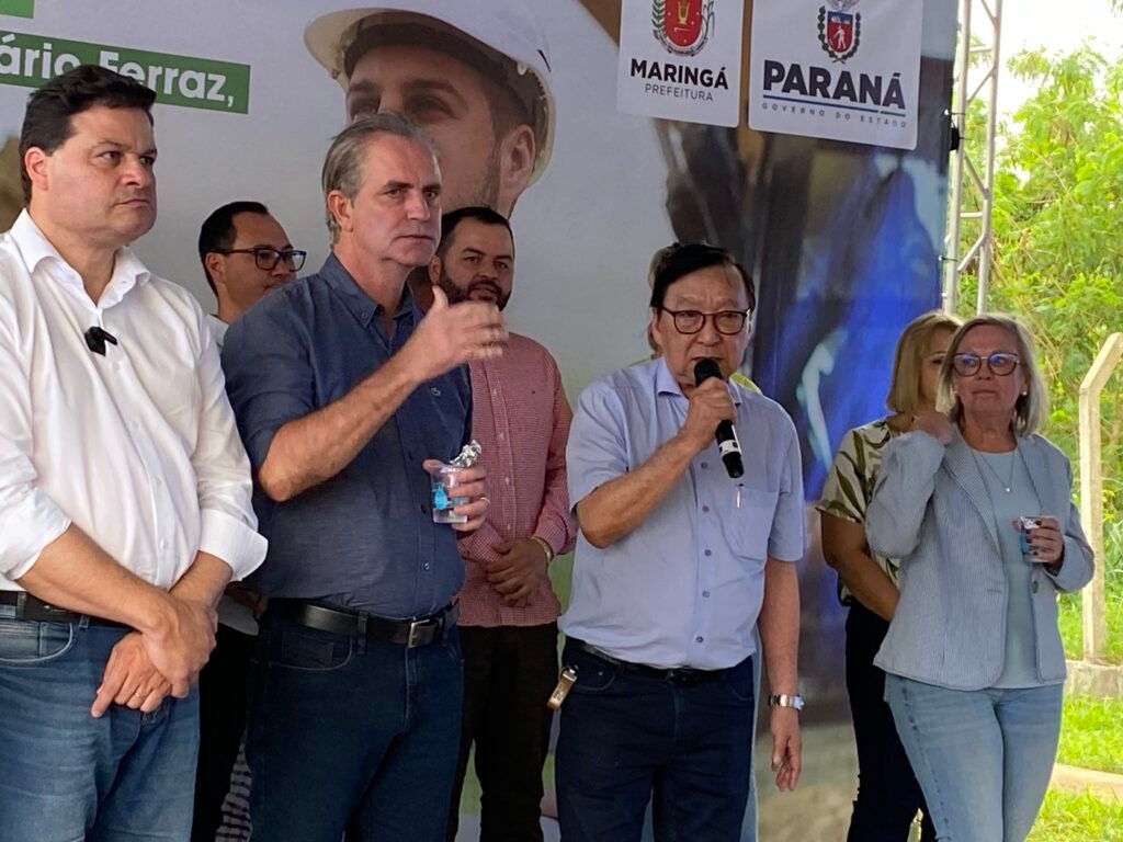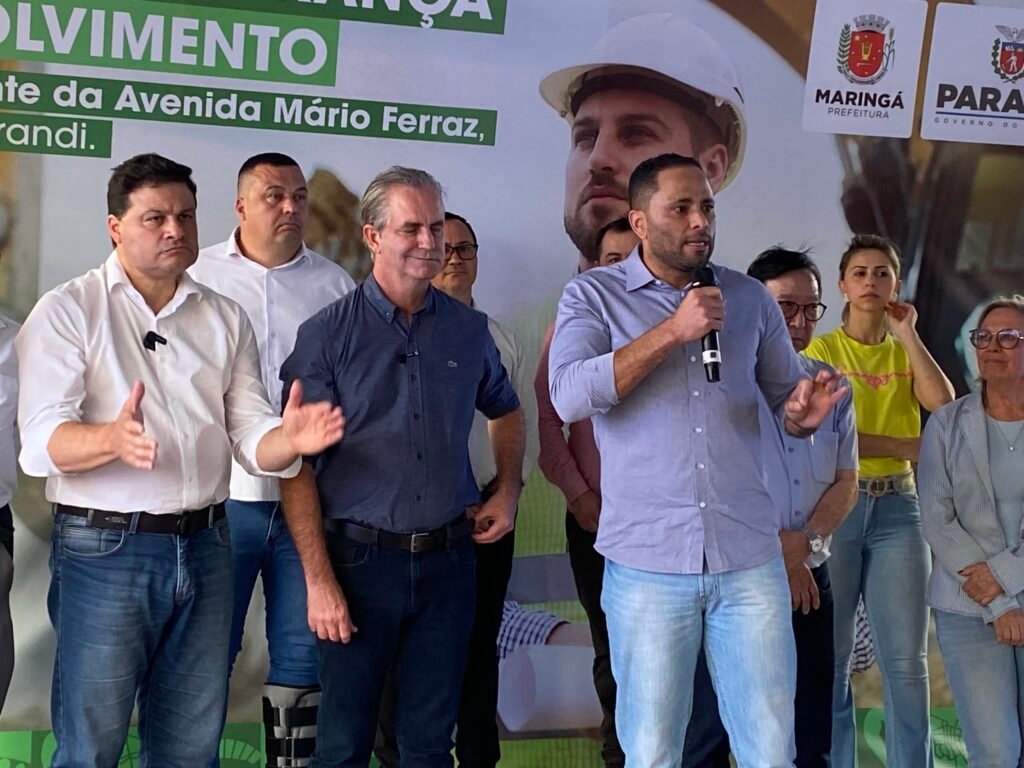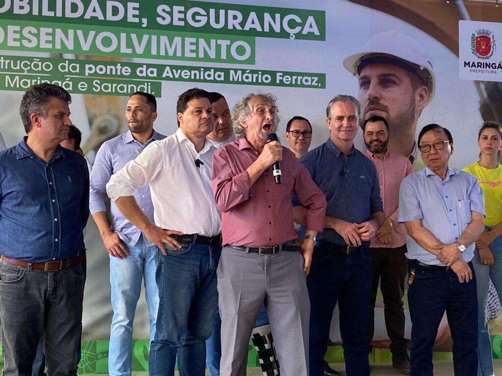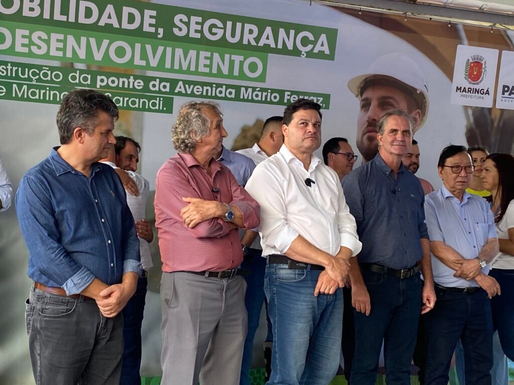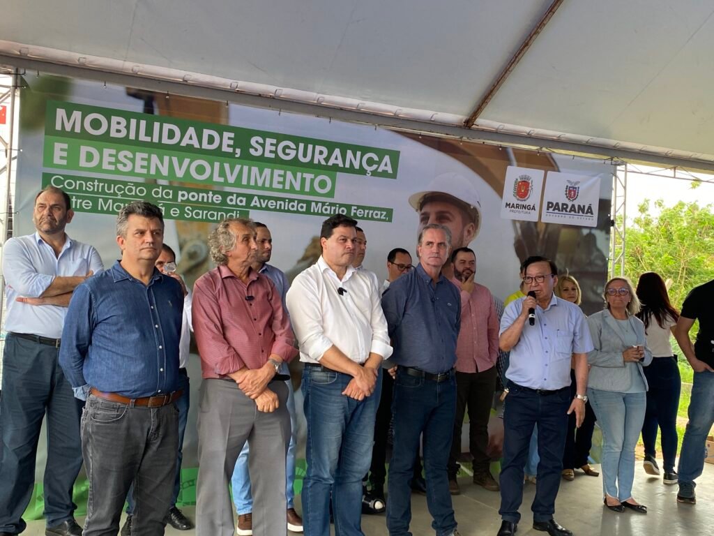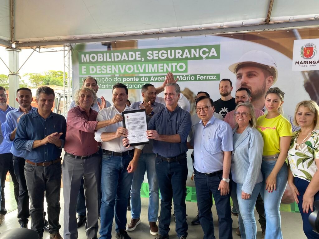 A ordem de serviço para a construção da ponte da Avenida Mário José de Faria Ferraz, que liga as cidades de Maringá e Sarandi, foi assinada nesta quarta-feira, 13, pelos prefeitos de Maringá, Ulisses Maia, de Sarandi, Walter Volpato e pelo secretário de Estado de Infraestrutura e Logística do Paraná, Sandro Alex e por outras autoridades.