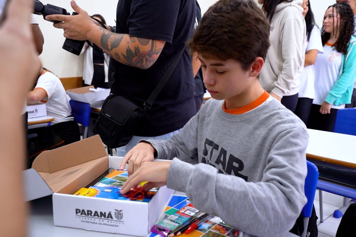 ECONOMIA – No Colégio Estadual Augusto Vanin, de Campo Largo, na Região Metropolitana de Curitiba, por exemplo, foram distribuídos 250 kits que contemplam todos os alunos de ensino fundamental e médio da escola. “Antes a gente tinha muito aluno que começava o ano com o material do ano anterior ou que a gente tinha que fazer vaquinha para conseguir comprar os cadernos. Agora isso acabou”, disse a diretora-auxiliar do colégio, Manuelle Ferraz.