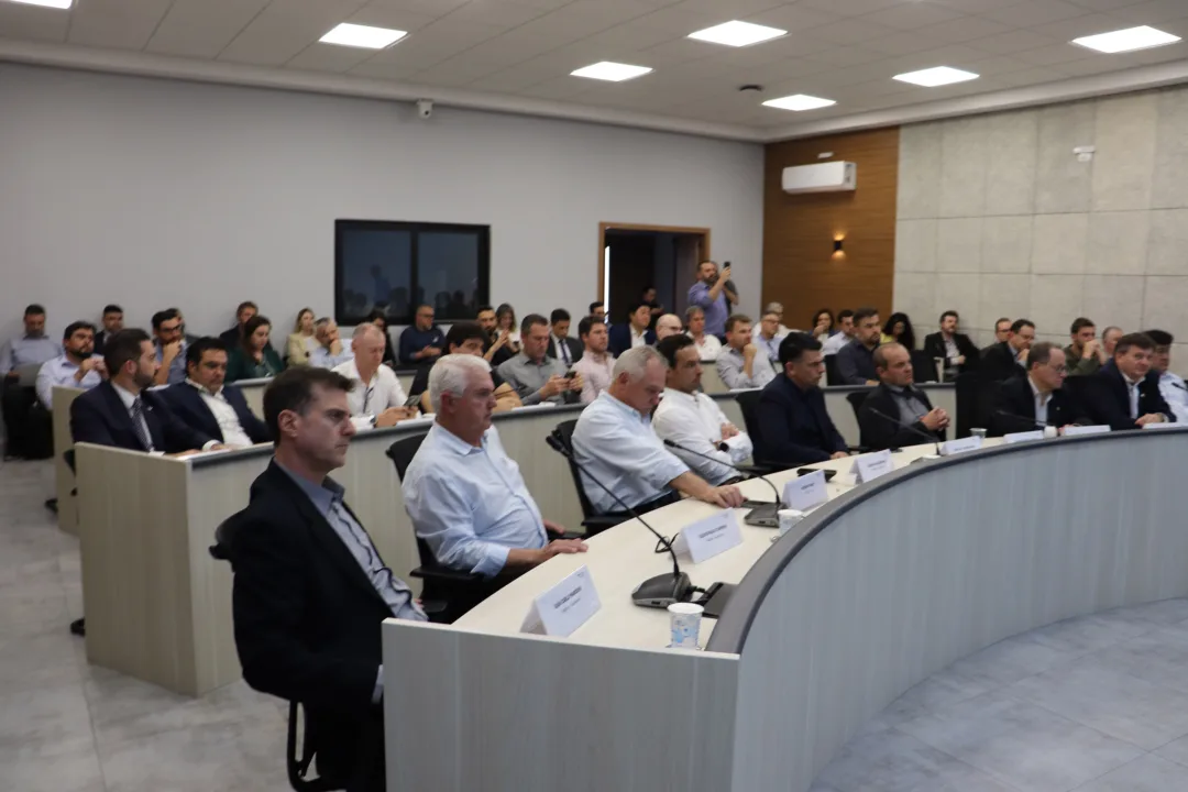 PRESENÇAS – Além de representantes do setor madeireiro, também participaram da reunião Claudio Stabile, presidente da Fomento Paraná; Edson Vasconcelos, presidente da Fiep (Federação das Indústrias do Paraná); o deputado estadual Luiz Fernando Guerra; o deputado federal Pedro Lupion; e Paulo Starke, superintendente do Banco Regional de Desenvolvimento do Extremo Sul (BRDE).