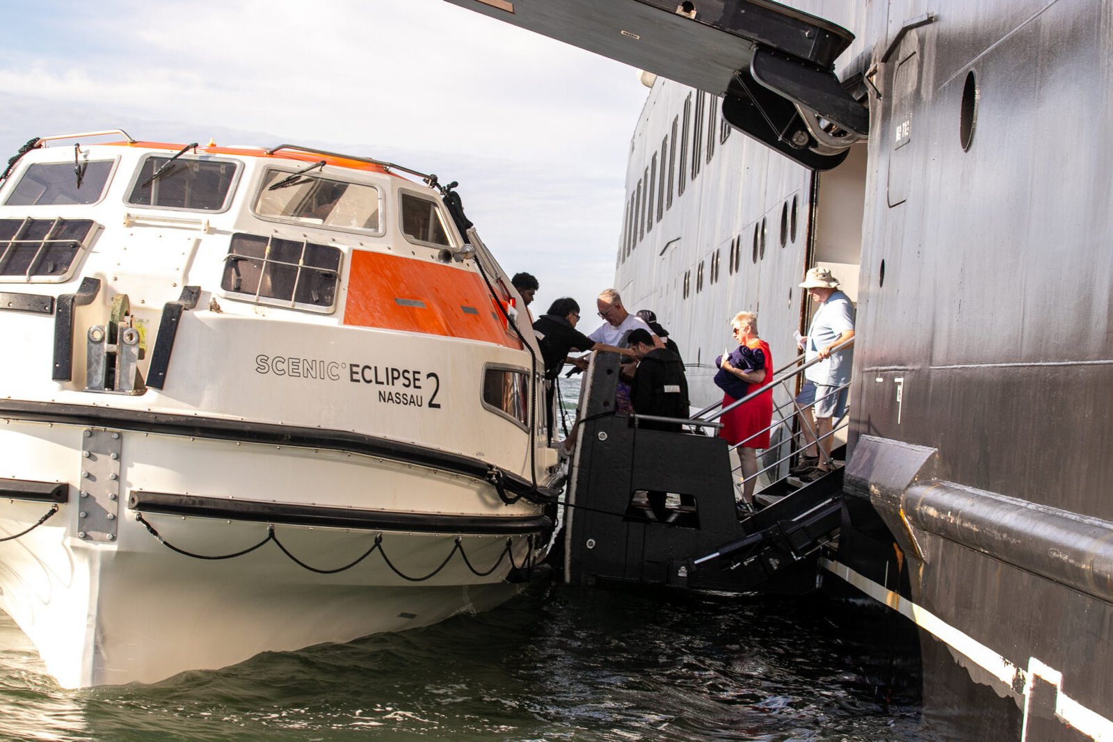 O navio de cruzeiro Scenic Eclipse tem 168 metros de comprimento, 22 metros de largura e 114 cabines com varanda. A embarcação também conta com academia de ginástica, salão de beleza, spa, sala de yoga, dez restaurantes, oito bares e vários lounges.