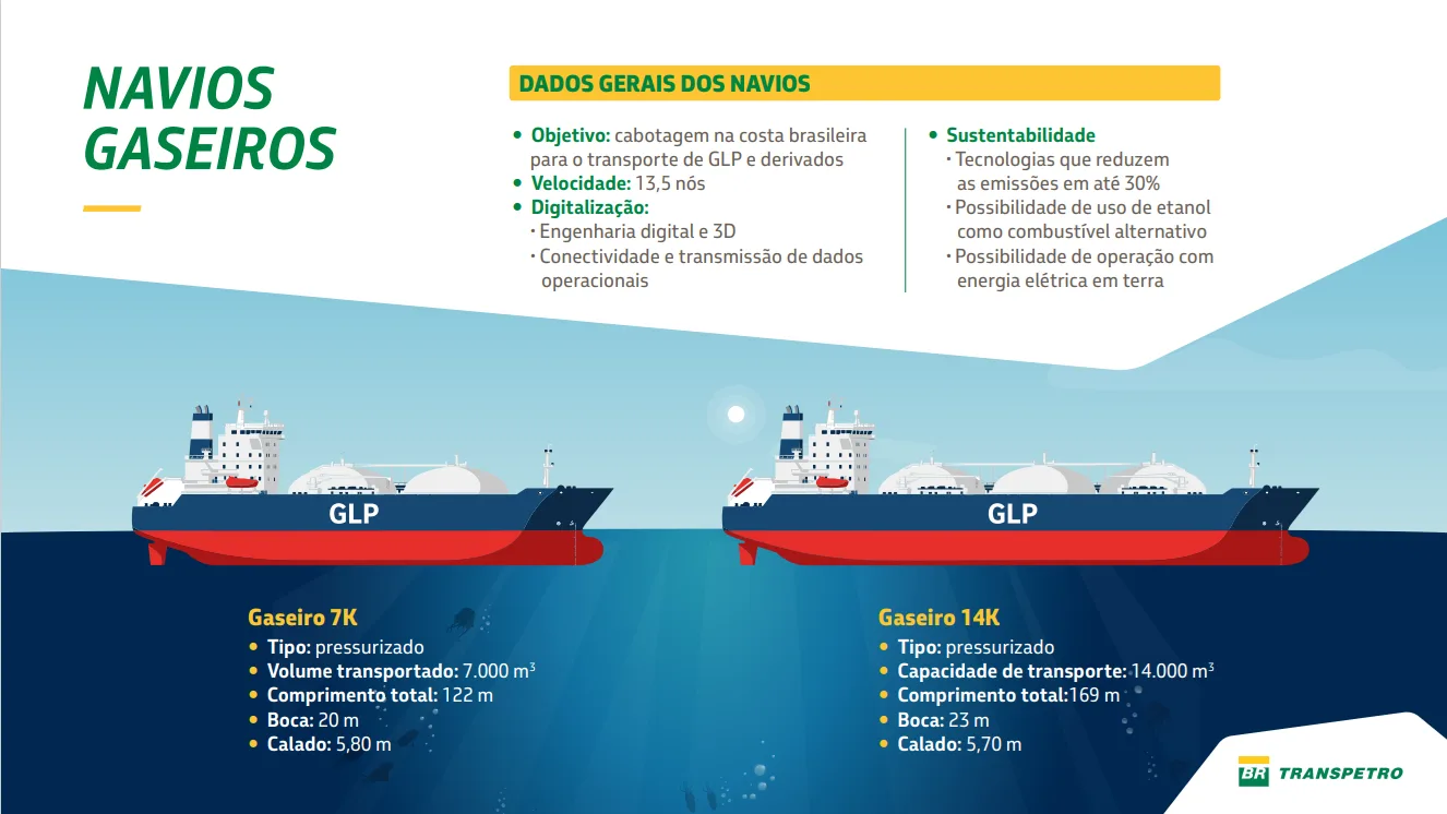 Com isso, a frota de gaseiros da Transpetro irá subir de seis para 14, triplicando a atual capacidade de transporte de Gás Liquefeito de Petróleo (GLP) e derivados.