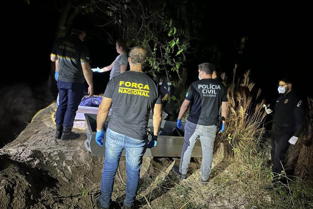 Por volta das 23h, as equipes localizaram uma área com sinais de alteração no solo, dissimulada sob galhos e vegetação seca. Durante as escavações, os policiais encontraram os corpos. A Polícia Científica do Paraná (PCIPR) participou da ação, sendo responsável pelos trabalhos de perícia no local e pelo recolhimento dos corpos, em um trabalho que se estendeu até o início da manhã de quinta-feira.