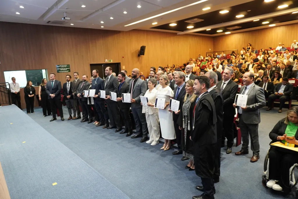 Sob a supervisão da juíza Daniela Pelazzo Chede Bedin, da 137ª Zona Eleitoral, o prefeito Silvio Barros e os vereadores eleitos neste ano receberam seus diplomas na tarde desta terça-feira, 10 de dezembro de 2024, no Auditório da Ordem dos Advogados do Brasil (OAB) – Subseção Maringá.