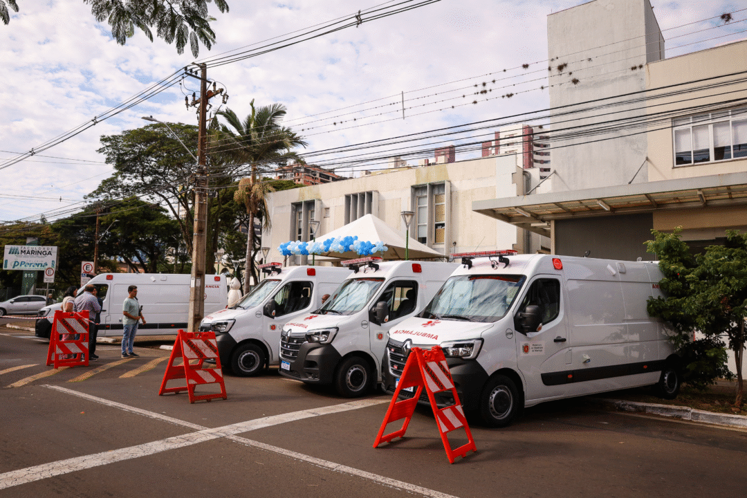 A Prefeitura de Maringá, por meio da Secretaria de Saúde, realizou nesta quinta-feira, 24, a entrega de quatro novas ambulâncias que reforçarão a frota da rede municipal de saúde. Os veículos serão utilizados no transporte de pacientes entre unidades de saúde da cidade e também em Tratamento Fora de Domicílio (TFD), garantindo mais agilidade, conforto e segurança à população. Os veículos começam a operar na segunda-feira, 28.