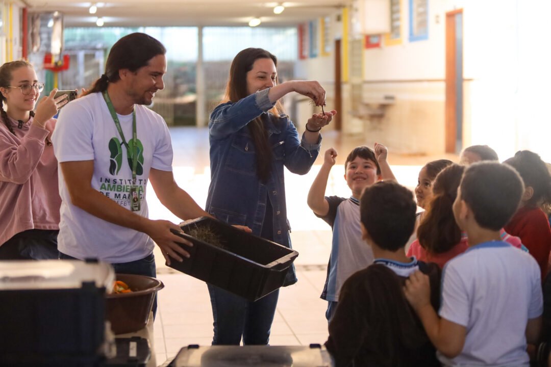 A ação faz parte do projeto ‘Minhoca na Cabeça’, desenvolvido pela Secretaria de Educação e o Instituto Ambiental de Maringá, e que tem implantado composteiras em unidades escolares para reaproveitamento de resíduos. “Com a conscientização dos alunos sobre a importância do reaproveitamento de resíduos, os pais, responsáveis e até servidores das escolas têm demonstrado interesse em realizar a compostagem em casa. Para isso, cedemos a composteira e fornecemos a capacitação”, disse o secretário de Educação, Fernando Brambilla.
