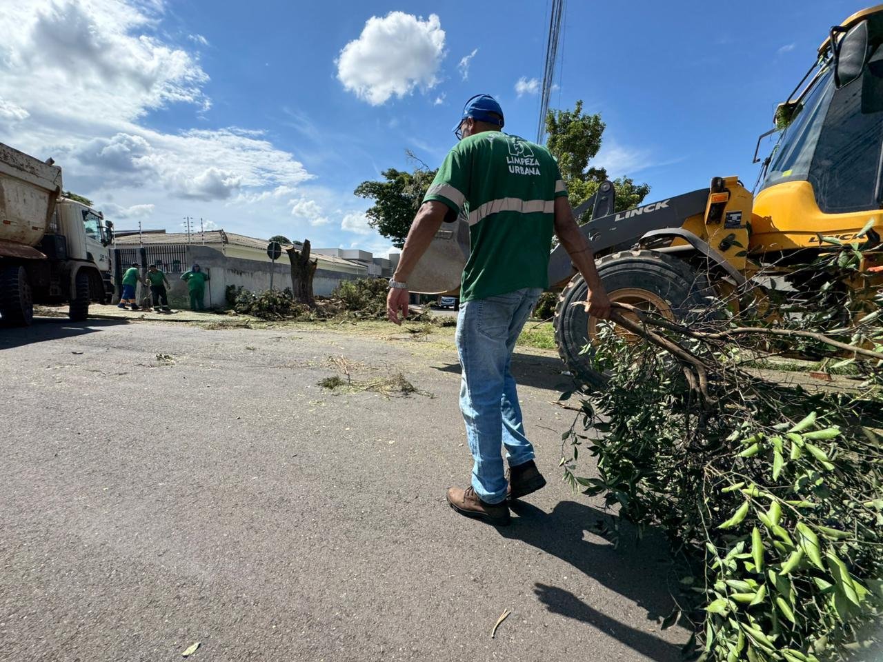 A Prefeitura de Maringá mobilizou, neste sábado, 21, as equipes das secretarias de Limpeza Urbana (Selurb) e Infraestrutura (Seinfra) e Defesa Civil para um mutirão de limpeza em diversos pontos da cidade, após o forte temporal registrado nesta sexta-feira, 20. Mais de 100 servidores seguem nas ruas e atuam na limpeza das vias, com apoio de caminhões, máquinas e equipamentos.