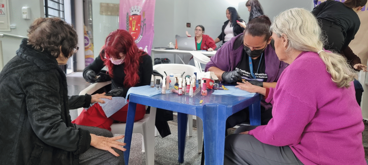 A Prefeitura de Maringá, por meio da Secretaria de Políticas Públicas para Mulheres (Semulher), realizou nesta sexta-feira, 27, o ‘Centro Dia da Autoestima’. A ação promoveu ações de beleza para idosas atendidas no Centro Dia, com serviços de corte de cabelo, maquiagem e esmaltação. A iniciativa integra a campanha ‘Junho Violeta’, que visa conscientizar a sociedade sobre o combate à violência contra a pessoa idosa e promover o respeito e a valorização desse público.