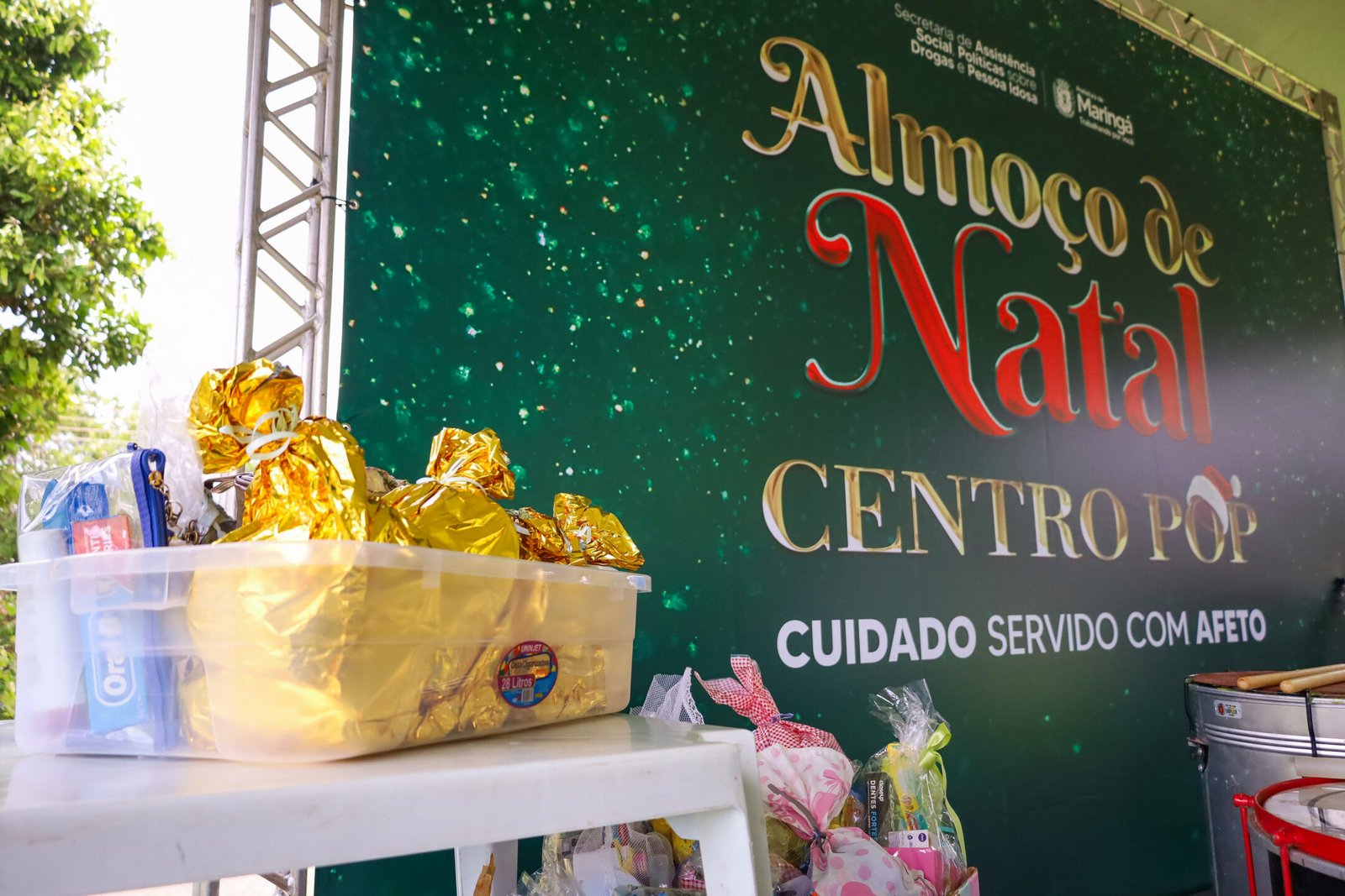 A Prefeitura de Maringá, por meio da Secretaria de Assistência Social, Política sobre Drogas e Pessoa Idosa (SAS), promoveu nesta segunda-feira, 22, um Almoço de Natal para pessoas em situação de rua. A ação proporcionou um momento de acolhimento, festividade e convivência para 80 pessoas, que foram recepcionadas com um churrasco no Centro Pop, localizado na Vila Progresso.