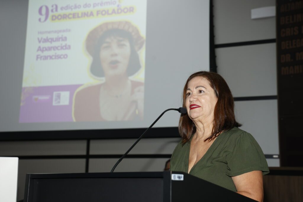 Emocionada, a homenageada Valquíria Aparecida Francisco iniciou o discurso com um agradecimento para todas as mulheres que a ajudaram durante a trajetória de vida. “Receber o prêmio é uma honra e emoção, além de motivo de orgulho e grande responsabilidade pela importância da Dorcelina. O que fiz junto com outras mulheres que passaram pela minha vida transformou a jornada de muitas pessoas, mas principalmente a minha”, disse.
