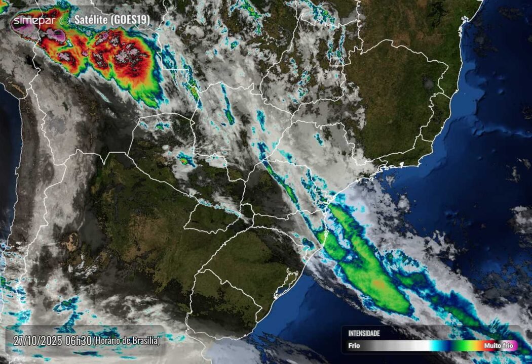 O tempo no Paraná segue instável com chuvas nesta segunda-feira, de acordo com o SIMEPAR. A instabilidade é causada pela combinação de uma frente fria no oceano e um sistema de baixa pressão no Paraguai.