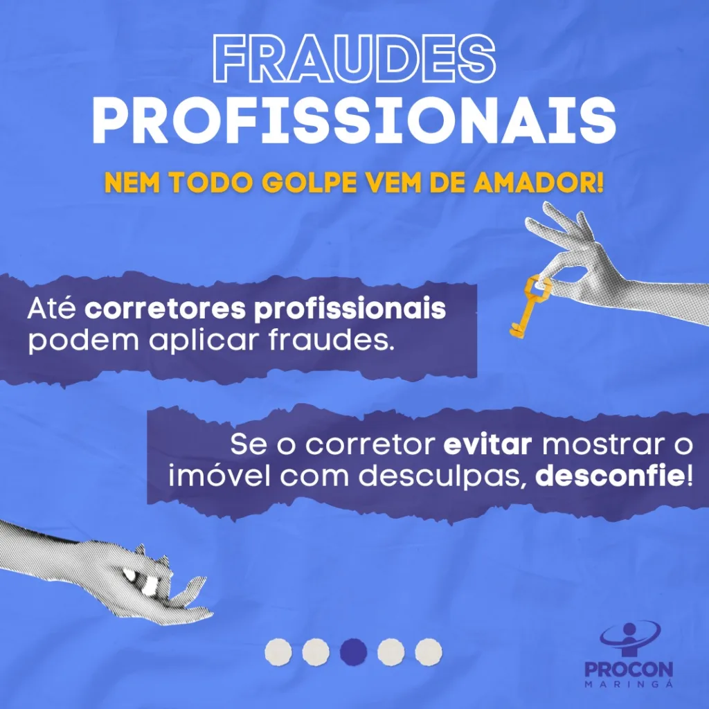 E, nem só golpistas e criminosos, enganam os locatários. Há fraudes aplicadas até mesmo por profissionais do setor, que tem acesso a documentos. O que facilita o golpe. Uma das situações comuns é o corretor dizer que o imóvel não está disponível para visita porque o proprietário está viajando. E, até mesmo, que não é possível abrir o local para visitação porque o suposto corretor não estaria na cidade no momento.