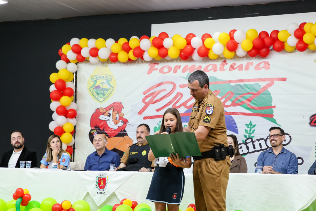 A cerimônia de formatura foi realizada no Pavilhão Branco do Parque de Exposições de Maringá. O vice-prefeito Edson Scabora participou do evento e foi recebido pelos estudantes com uma grande festa. “É sempre uma alegria imensa participar da formatura do Proerd, uma iniciativa que promove a cidadania. Nossa educação municipal é referência em qualidade e apoiamos o Proerd e demais projetos que garantem o desenvolvimento de habilidades sociais e aprendizado lúdico”, afirmou.