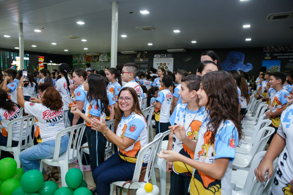 “Hoje é Dia de Proerd”, celebraram mais de 1,1 mil alunos da rede municipal de ensino nesta terça-feira, 11. Os estudantes do 5º ano de 19 escolas municipais participaram da formatura do Programa Educacional de Resistência às Drogas (Proerd). O projeto é uma parceria entre a Prefeitura de Maringá, por meio da Secretaria de Educação (Seduc), e o Batalhão de Patrulha Escolar Comunitária.