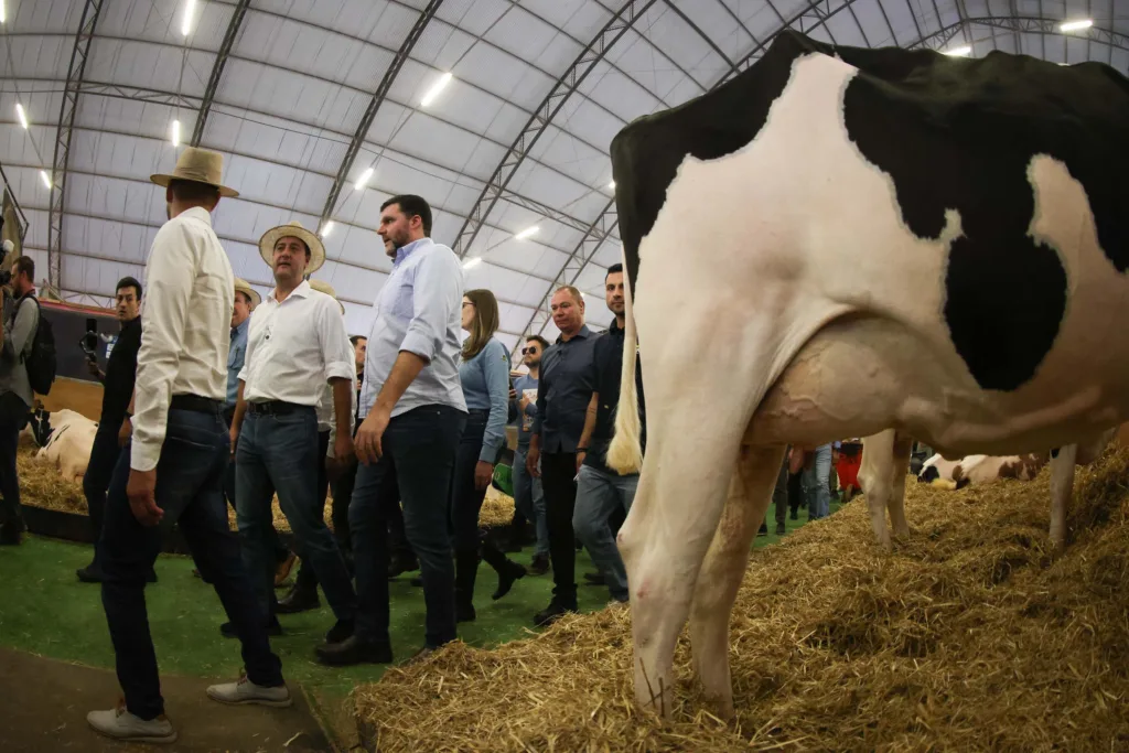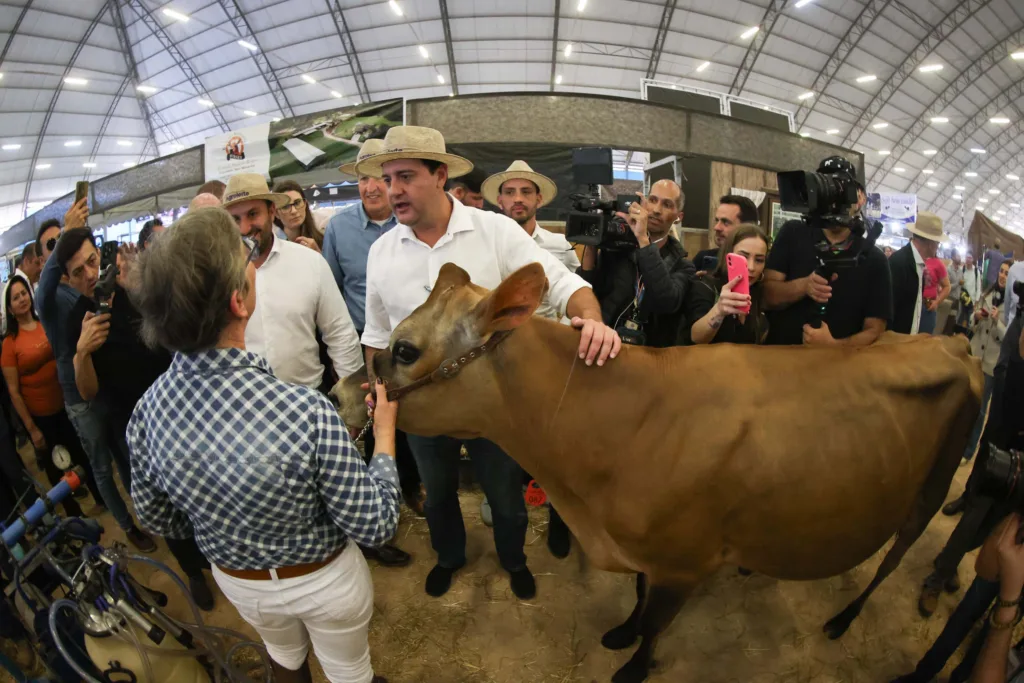 AGROLEITE – Após os anúncios, o governador fez um giro pela feira, que está em sua 24ª edição. Neste ano, a Agroleite está promovendo o tema “Horizontes em Sintonia”, que trata de alternativas para aumentar a eficiência das propriedades produtoras de leite.