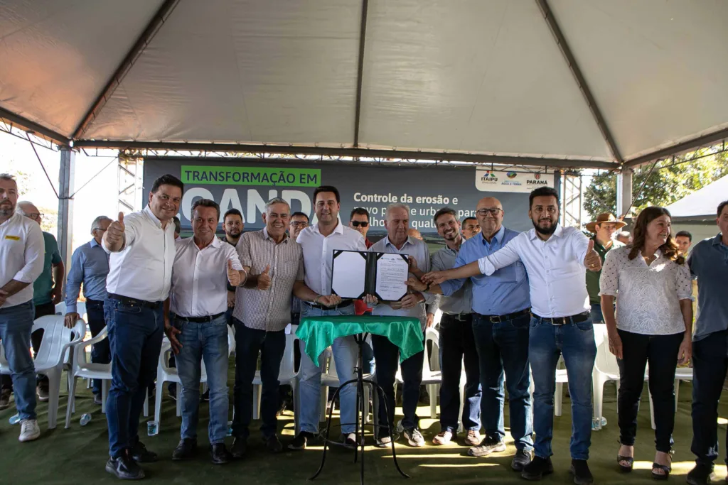 Loanda, 21 de junho de 2024 – O governador Carlos Massa Ratinho Junior assinou, em Loanda, a Ordem de Serviço para o início da obra de controle e recuperação da erosão no Emissário Água da Mina.