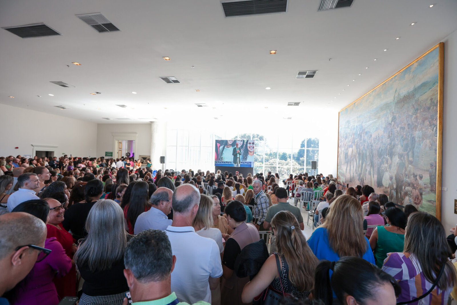 PRESENÇAS – Participaram da abertura do encontro os secretários estaduais Luciana Casagrande Pereira (Cultura), Alex Canziani (Inovação, Modernização e Transformação Digital), Hudson Teixeira (Segurança Pública), Leonaldo Paranhos (Turismo) e Ulisses Maia (Planejamento); a controladora-geral do Estado, Letícia Ferreira da Silva; os diretores-presidentes da Cohapar, Jorge Lange, do Detran, Adriano Furtado, e do Ipardes, Jorge Callado; e o comandante da PMPR, coronel Jefferson Silva.