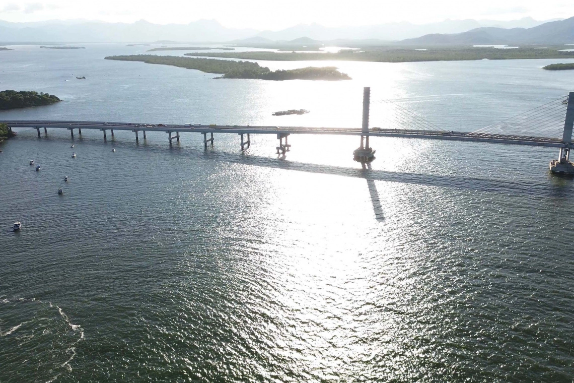 Sobre a ponte A nova ligação fixa sobre a Baía de Guaratuba representa um investimento de mais de R$ 400 milhões do Governo do Estado e é considerada uma das maiores obras de infraestrutura em andamento no Paraná. Com 1.240 metros de extensão, a estrutura conta com quatro faixas de tráfego, além de ciclovia e áreas destinadas a pedestres. Projetada para substituir a travessia por ferry-boat, a obra reduzirá o tempo de deslocamento entre os municípios para cerca de dois minutos.