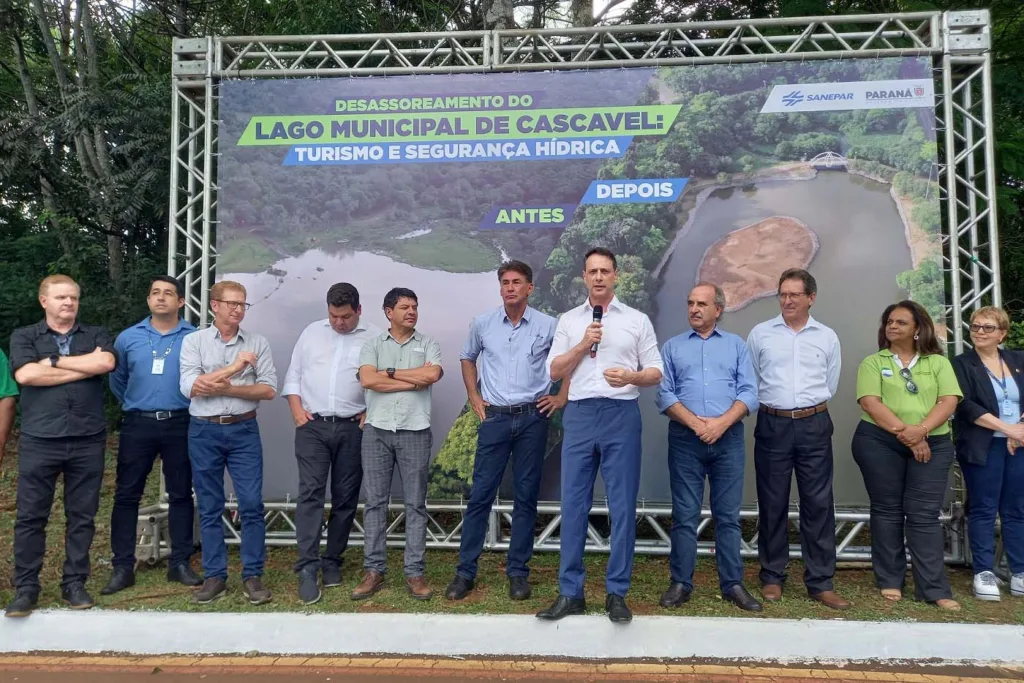 A Sanepar entregou na tarde desta sexta-feira (23) as obras de desassoreamento e revitalização do Lago Municipal de Cascavel. A ação da Companhia devolveu ao município um lago totalmente revitalizado e com novos padrões de paisagismo que respeitam e promovem cuidados ambientais. Os investimentos totalizaram R$ 5,5 milhões.