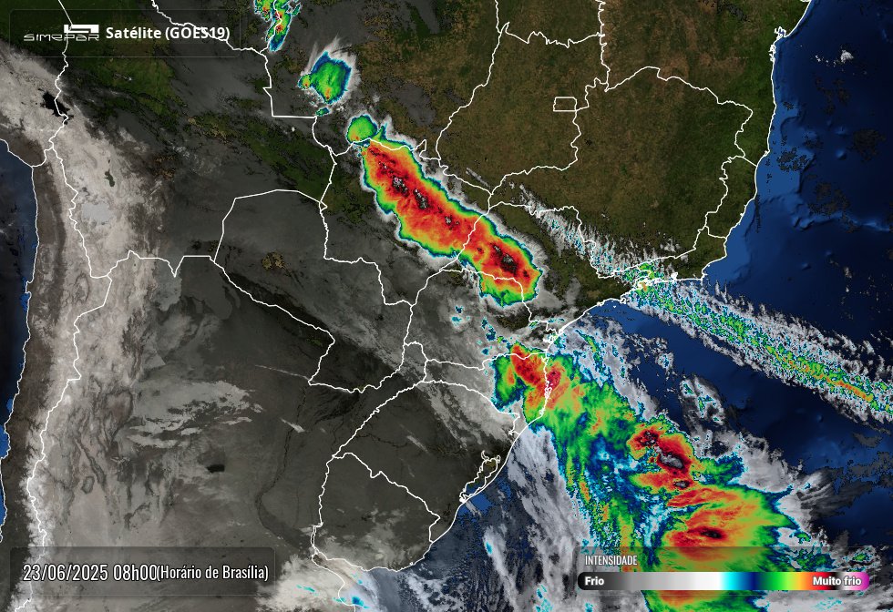 A semana começa com chuva forte e temporais, principalmente nas faixas oeste, centro e sul do Paraná, devido ao deslocamento continental da frente fria, aponta o Simepar. Esse sistema deverá avançar pelo estado como uma linha de instabilidade, com possibilidade para fortes e intensas rajadas de vento em todas as regiões. Com a chegada da primeira massa de ar polar rigorosa do inverno, as temperaturas sofrerão um declínio expressivo ao longo da segunda-feira, com mínimas invertidas e possibilidade de valores negativos, no período da noite, em municípios próximos à divisa com Santa Catarina.