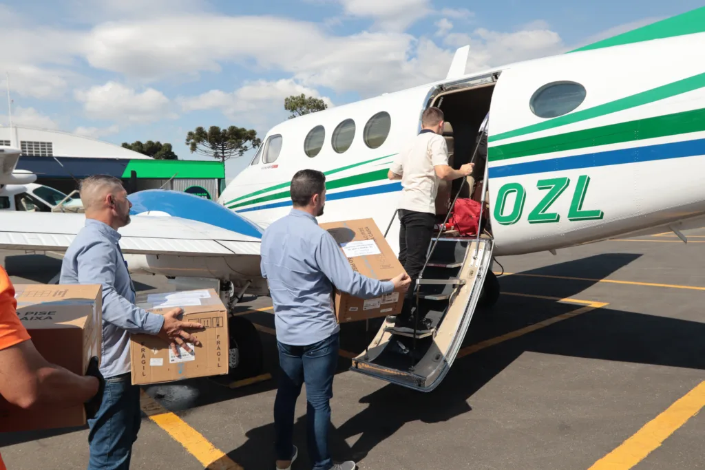 MANTIMENTOS E EQUIPAMENTOS – As aeronaves do Paraná também levaram mais mantimentos e equipamentos ao Rio Grande do Sul. Ainda na área de saúde, foram enviados 153 quilos de medicamentos para os hospitais das cidades de Santa Maria, Alegrete, Santiago e Ijuí. Esses medicamentos foram adquiridos pelo governo gaúcho de farmacêuticas paranaenses, com as aeronaves do Governo do Paraná sendo usadas para o transporte. Entre as medicações enviadas estão antibióticos, antiflamatórios, analgésicos para entubação em UTI, entre outros.