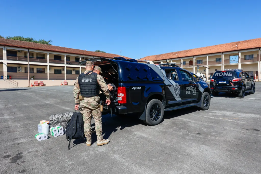 EQUIPES – Os policiais paranaenses fazem parte do Comando de Missões Especiais da PM, vindos de diferentes batalhões da corporação, como Batalhão de Polícia Militar de Fronteira (BPFRON), Batalhão de Polícia Rondas Ostensivas de Natureza Especial (RONE) e Batalhão de Polícia de Choque. “Este grupo de militares estaduais paranaenses já atua diariamente no combate à criminalidade aqui no Paraná e tem todo o preparo necessário para enfrentar qualquer tipo de situação”, afirmou o chefe do Estado-Maior da PMPR, coronel Valmor Anderson Pereira.