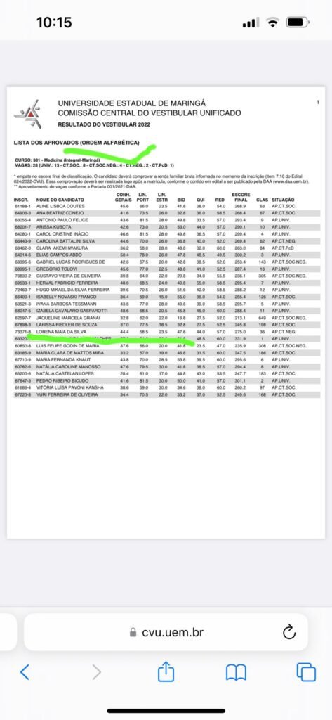 Sua filha, Lorena Maia da Silva, ligou para dar uma excelente notícia ao pai, empresário e parlamentar, ela passou no vestibular de medicina 2023 da Universidade Estadual de Maringá (UEM).