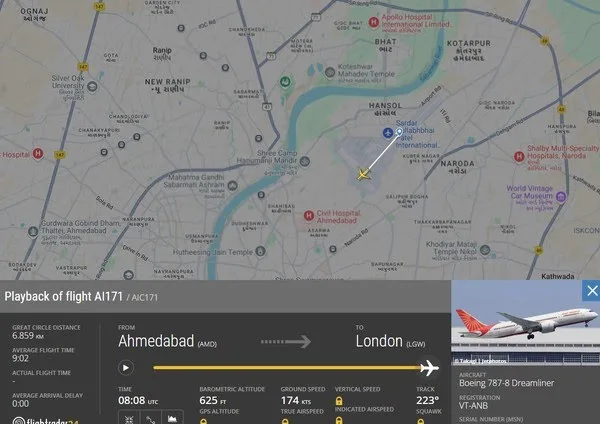 O desastre ocorreu logo após a decolagem, quando os pilotos emitiram um sinal de emergência antes da queda próxima ao aeroporto. Com 242 pessoas a bordo, a aeronave atingiu o telhado de um alojamento para médicos. A mídia local reporta que pelo menos 20 estudantes de medicina podem ter morrido em decorrência da queda.