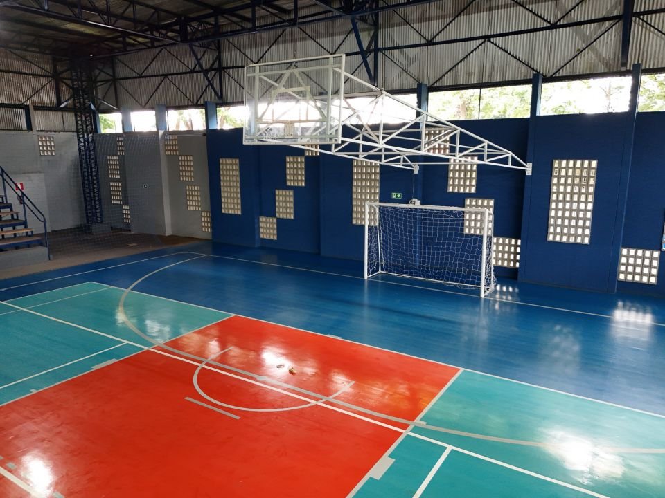 Quadra remodelada com piso emborrachado do novo centro esportivo do Jardim Alvorada