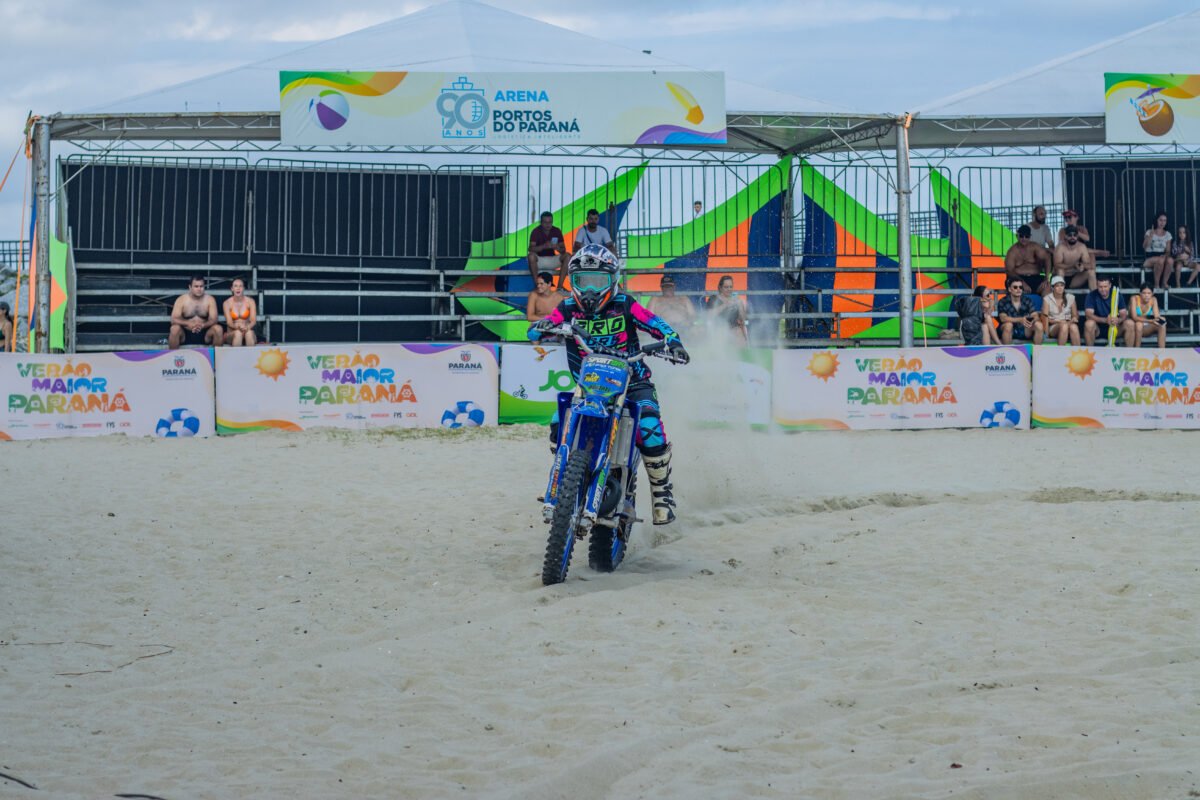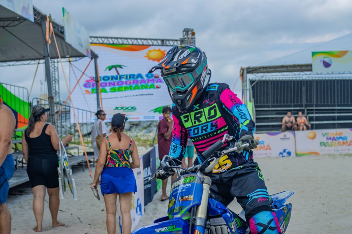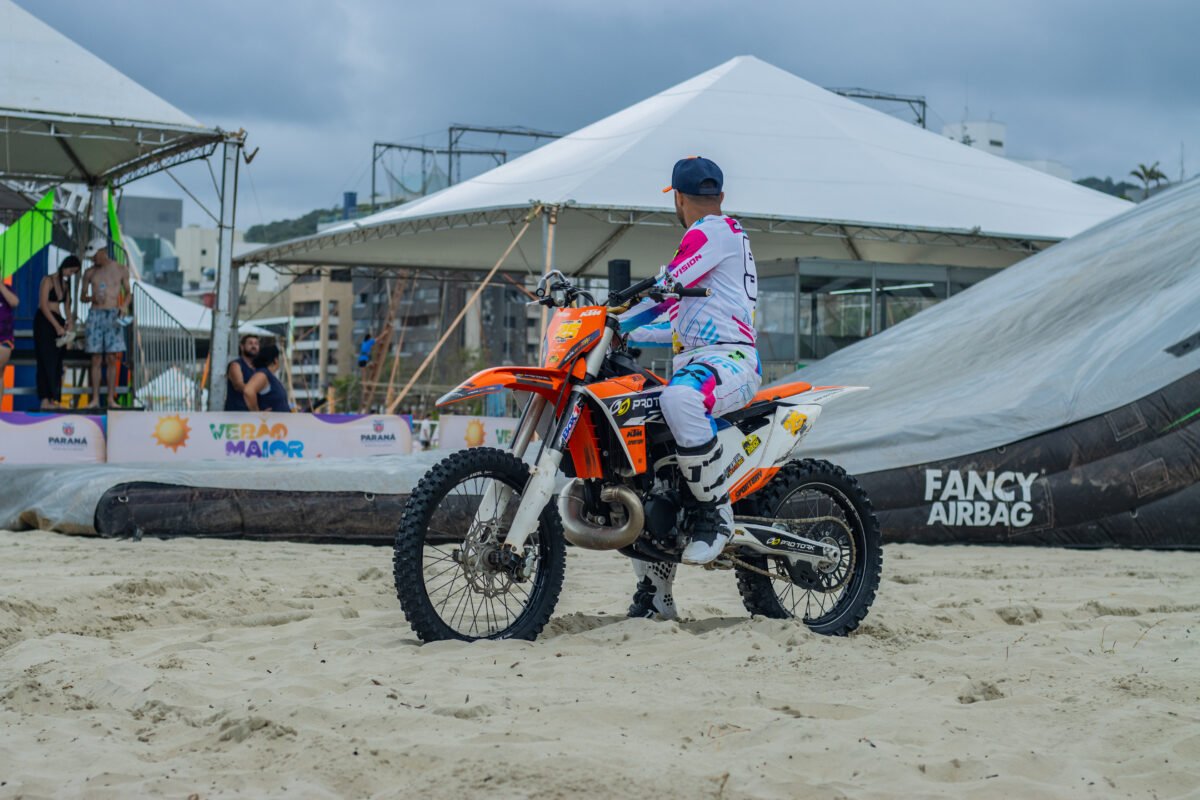 O Verão Moto Show, realizado sábado (4) na Arena Verão Maior, em Caiobá, marcou a estreia de 2025 no calendário esportivo do Verão Maior Paraná. O evento, parte dos Jogos de Aventura e Natureza (JANs), contou com apresentações de tirar o fôlego dos pilotos Joaninha, hexacampeão da Copa Brasil de Motocross Freestyle, e Robert Fire, que juntos formam a equipe J99 Freestyle Show.