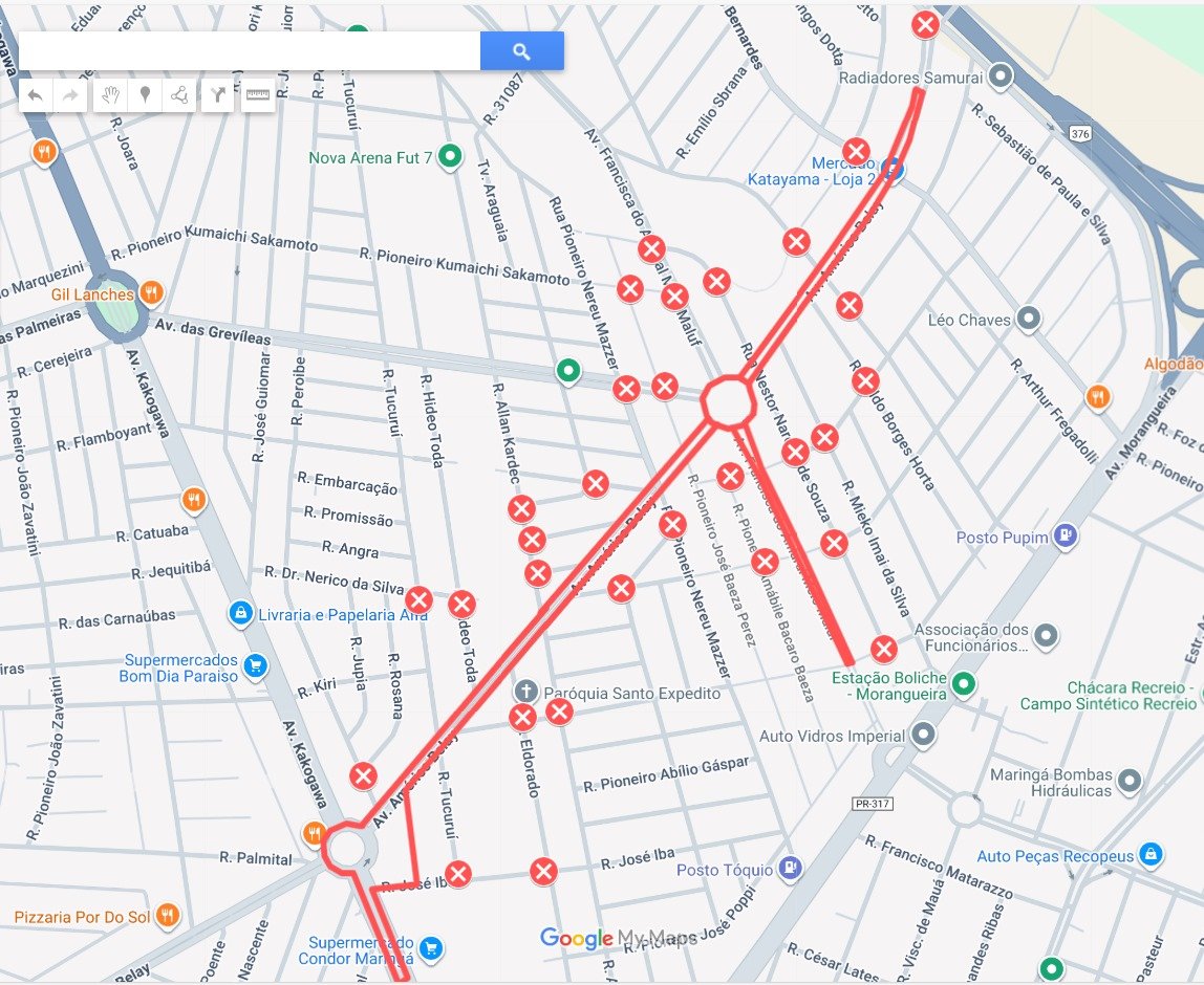 As vias com interdições temporárias serão: Avenida Kakogawa, entre a Rua João Luís Dias e a Praça Emílio Fajardo Espejo; Avenida Américo Belay, no trecho entre a Praça Emílio Fajardo e Rua Pioneiro Antônio Bernardes; toda a extensão da Travessa Tubarão; Avenida Francisca Maluf, da Rua Sebastião de Paula Silva até a Avenida Américo Belay, além de ruas transversais ao trajeto.